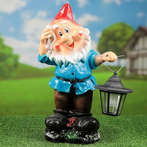 Zahradní figurky s lucernou jsou originálním řešením pro osvětlení plochy. Umístěte takové produkty podél cesty: ve tmě se určitě budou hodit.